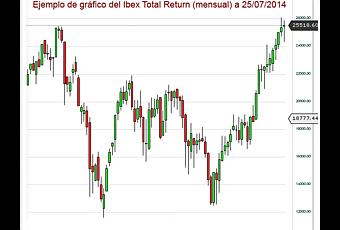 Mirando el gráfico del Ibex Total Return (mensual) apreciaremos que estamos en subida libre, cosa que no nos muestra con tanta claridad el gráfico mensual del Ibex 35.