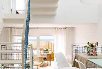 Elementos como una barandilla de red, sillas con carcasas vintage, o las vistas privilegiadas de un baño pequeño que se hace majestuoso.