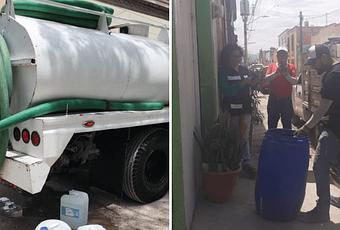 Para facilitar la entrega, se ha estacionado una pipa de agua en el jardín del Barrio de San Miguelito, desde donde el agua es transportada en camionetas equipadas con bidones de mil litros. Estas camionetas están especialmente adaptadas para navegar por calles actualmente en reparación, asegurando que el agua llegue directamente a los residentes que más lo necesitan.