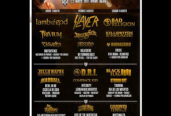 El Resurrection Fest, que se celebrará este año del 1 al 3 de agosto en Viveiro (Lugo), con nombres como Bad Religion, Slayer, Biohazard, Lamb of God o Jello Biafra, entre muchos otros, ha anunciado su distribución por días. Clicka en la siguiente imagen para ampliar: