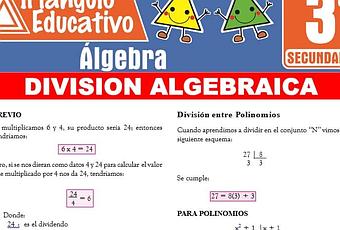 Aquí encontraras GRATUITAMENTE el siguiente material sobre División Algebraica preparado especialmente para los estudiantes de Tercer de Secundaria. Este contenido se desarrolla en el curso de ALGEBRA y te lo compartiremos GRATIS en formato PDF.