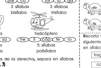 Recorta y pega en tu libreta las siguientes palabras y sepáralas en sílabas.