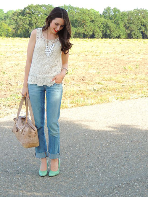 Como pueden ver en las imágenes, los tacones menta van perfecto con el blanco y negro, combinados con colores pasteles, o en contraste con colores más fuertes. Quedan perfectos con jeans y hasta con looks de faldas y más otoñales y hasta con vestidos en looks de fiesta. Así que si por ahí tenían la duda si era buena idea adquirir ese par de tacones menta, pues que esperan para animarse! Y si ya tienes tu par, pues ya ves que hay muchas opciones aún para sacarle el jugo todavía durante el otoño e invierno! Fuente: Pinterest Besos Fiorella Sígueme en: