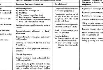 Según lo descrito en este cuadro, las principales maneras de controlar la demografía son: crear la idea de que una familia con dos niños es más que suficiente, retrasar el matrimonio, favorecer e incentivar la homosexualidad, provocar depresión crónica, facilitar el aborto y los contraceptivos o introducir esterilizantes en el agua potable... Podemos constatar que lo diseñado se ha hecho realidad