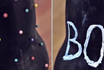 Hoy os traigo dos maneras diferentes y rápidas de decorar una calabaza para Halloween. Una con pintura de pizarra y rotulador de tiza y la otra con alfileres con cabezas de colores, creando un efecto confetti.