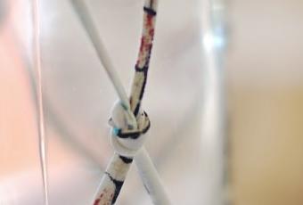 To get it you just need 8 trings. Tied them and hang them to make it easier to work with them. Tied the trings in couples. Repeat but let the first string loose. When you finish, you will have the last string left too. Tied the two together. You only have to place the pot and tied the strings together in the bottom and cut the strings if necessary.