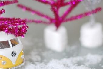 Para que los arbolitos se mantengan de pie podemos utilizar unos marshmallows, así podemos crear nuestro propio paisaje nevado. Si queremos decorarlos podemos hacerlo con pequeños pompones, aunque tal cual también resultan de lo más gracioso.