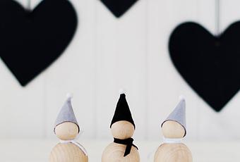 La verdad es que en cuanto las vimos nos encantaron, ¡son súper chulos, podríamos llenar la casa con ellos! =))) Pueden ser personitas, mini muñecos de nieve o duendecillos, lo que le guste más a cada uno. En este caso se han dejado en color madera y blanco, jugando con el binomio nórdico por excelencia: blanco-negro. Pero por supuesto los podéis hacer del color que queráis, quedarán igual de bonitos.