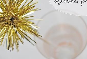 El DIY de hoy es perfecto para darle un toque especial y de última hora a tus cócteles de Nochevieja. Unos agitadores sencillos para los que solo necesitaréis unos palitos de brochetas y algo de espumillón.