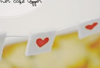 Hemos recortado una tira de corazones que luego hemos vuelto a recortar por parejas y por fin hemos doblado para crear pequeños banderines con corazones por ambas partes. Después solo queda pegar con cola blanca los banderines colocando un cordón entre las dos partes y anudar el cordón a dos palitos de brocheta y el cake topper está listo para adornar la tarta que queráis. ¿Qué os parece la idea?