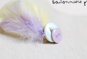 Select some feathers in the colours you like the most and stick them. Hide the part of the feather where you spread the glue with a pair of buttons. Stick the buttons and your boutonniere is ready.