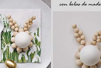 Las bolas de madera para crear objetos decorativos y funcionales me apasiona. Con ellas puedes crear elementos que darán una atmósfera natural a la decoración de tu hogar, como os muestro en este post. Incluso es muy sencillo trabajar con bolas de madera, en un par de minutos puedes crear un salva-manteles, o este original adorno de pascua, con forma de conejito.