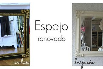 Como podéis ver en la imagen, se trataba de un espejo en madera oscura con remates en pan de oro que, la verdad, a mí me seguía pareciendo bonito pero un poco pasado de moda. Esos colores oscuros que tanto convencían - a los clientes y a mí - hace unos años, ahora me parece que están out. Quién sabe... igual en unos años me pase lo mismo con el blanco, pero de momento... ya sabéis lo que me gusta el reciclaje y al renovación, así que... vamos con ella :)