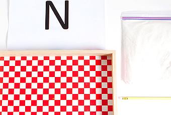 Materiales necesarios: una bandeja o caja poco profunda, azúcar, lápiz, letras impresas para que los niños se puedan fijar. Imagen: hellobee