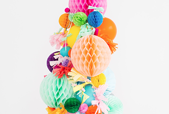 El primero me ha robado el corazón. Está formado por un montón de honeycombs, globos y papel de colores. Además después se puede aprovechar todo para decorar y alegrar un poco la vista.