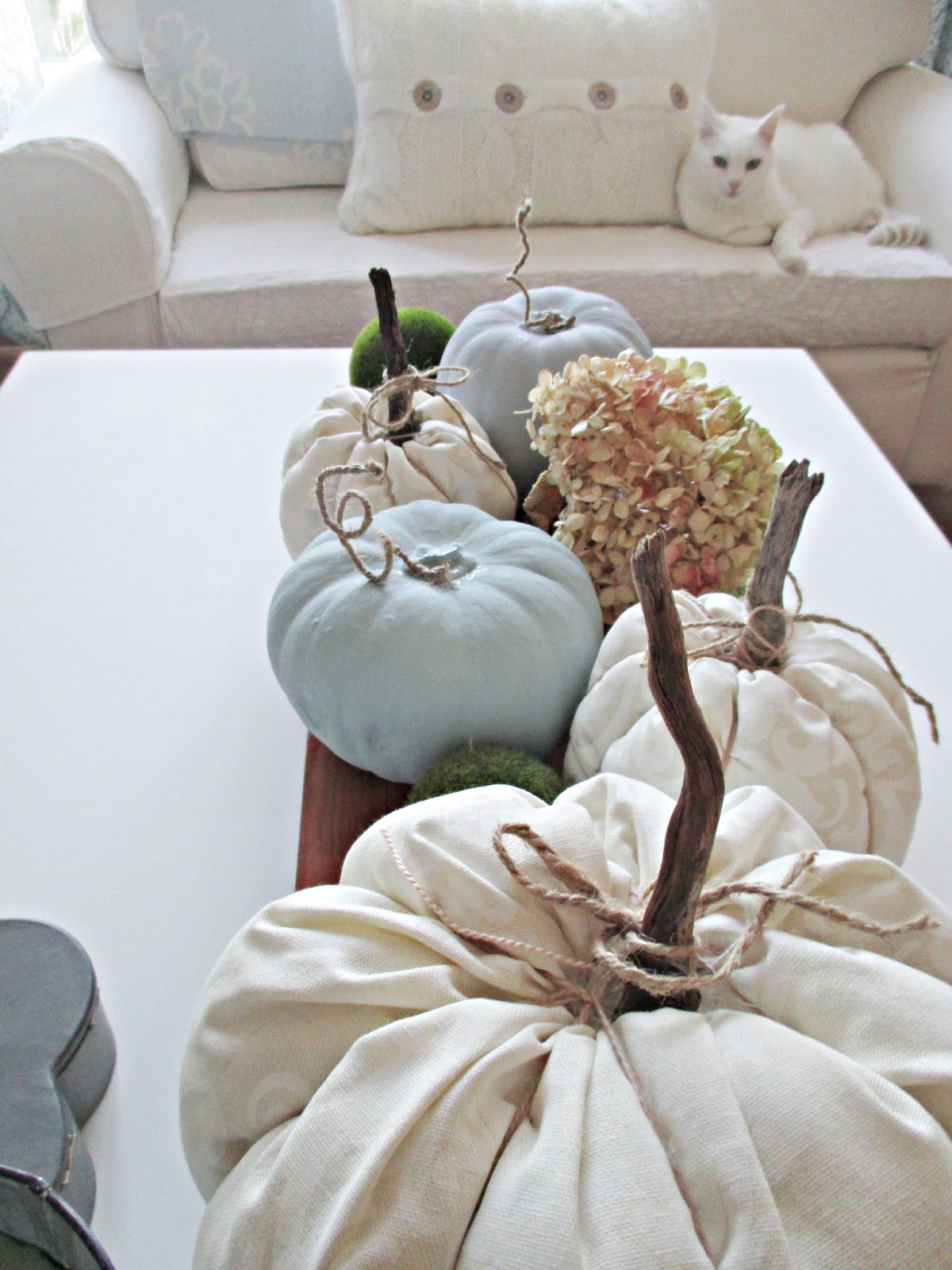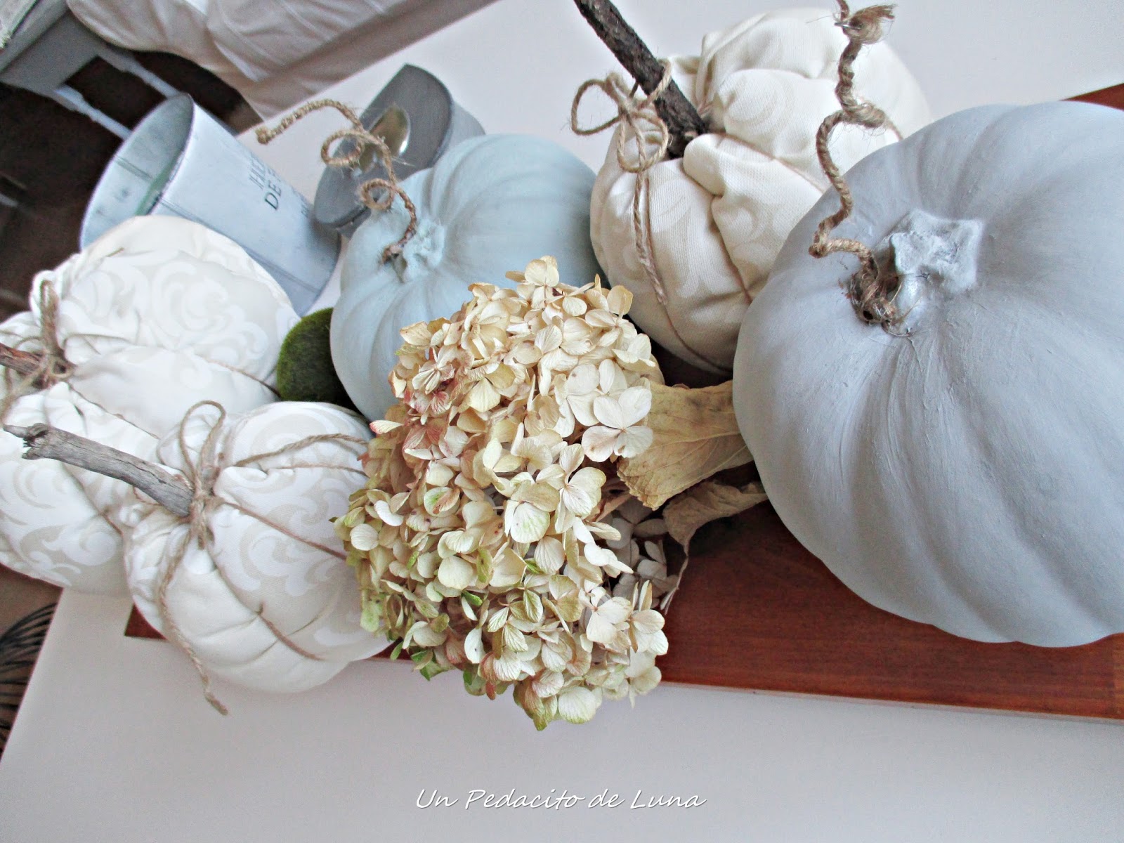 Las otras calabazas las hice tiempo atrás con guata, tela, cuerda y unas ramas, aquí