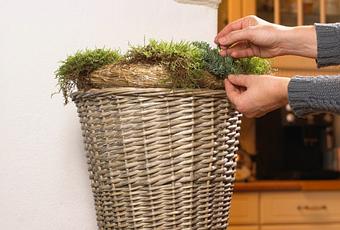 A continuación vemos este otro calendario más minimalista, si tenéis una pared de madera lo podéis hacer directamente sobre ella, sino podéis buscar un tablero vosotros mismos y colgar con clavos los números y las mini-poinsettias en bolsitas. Recordad meter las poinsettias en las bolsitas o directamente con sus macetas o con las raíces.