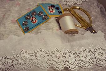 Sujetas la puntilla a los alfileres, luego hilvanas y pasas maquina
