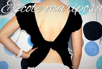 ... cortarle la cinturilla para que sea más corta, si tu camiseta ya lo es, seguramente no haga falta cortarla. Las mangas también las vamos a cambiar, cortándolas en un punto medio entre el codo y el hombre, y por último, viene el paso más importante para conseguir el escote de mariposa en la espalda. Cortamos la camiseta a lo largo de una de las costuras laterales, incluida la manga de ese mismo lado. Ponemos la camiseta extendida boca arriba, cogemos los extremos de uno de los lados, y los giramos completamente entre sí, como se puede ver en el vídeo, se lleva hacia el otro lado de manera que coincidan las dos mangas, y ya lo único que queda es fijarlo bien, ya sea con imperdibles para un look mas punk, pegándolo o cosiéndolo, y ¡listo!ya hemos conseguido el escote en mariposa y un aire nuevo a nuestra camiseta, que os parece??