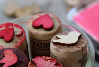 Los primeros están hechos con corchos de vino y pequeñas piezas de madera. Las podéis encontrar en tiendas que vendan material para scrap. Además, con la excusa de hacer los sellos puede caer alguna copita de vino. 2 en 1.
