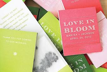 ¿Que os parece la idea de regalar a los invitados unas cuantas semillas en un paquete de cerillas personalizado? A mi me parece muy original. Hacerlos es fácil solo tienes que imprimir en cartulinas de colores este pdf, recortar y grapar una bolsita de papel con las semillas.