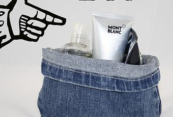 Es verdad que como se trata de una tela dura y bastante versátil, nos sirve para muchos Diy, pero fue la necesidad de colocar ciertas cosas en el baño, lo que me sirvió para inspirarme en esta idea: un cesto de almacenaje con los bajos de un vaquero.