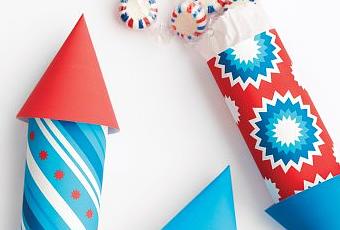 En este caso han metido caramelos dentro, pero si no os queréis complicar mucho, con imprimir las plantillas que podéis encontrar aquí y pegar el cuerpo del cohete con el cono ya es más que suficiente. Si preferís llenarlos de caramelos, podéis ver el paso a paso en este enlace.