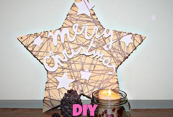 Usé esta estrella de madera que tenía por casa y que estaba utilizando de portafotos, pero me cansé y decidí hacer un adorno de navidad con ella. Si no tienes una igual, hazla de cartón pegando varias capas una encima de otra para darle el grosor y la dureza necesarias.
