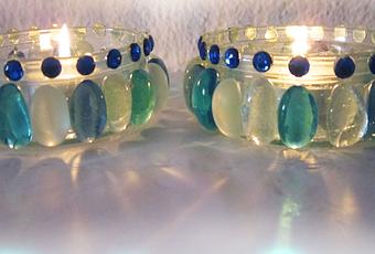 Las navidades ya están a la vuelta de la esquina. Hay que ir pensando en los regalos. Pero....la economía no esta para tirar cohetes, así que hay que echar mano del ingenio. Yo tenia en casa unos vasitos de cristal, de unos flanes, y no sabia que hacer con ellos. Así que busque unas cuentas de cristal de colores,un poco de silicona caliente, y me puse manos a la obra.