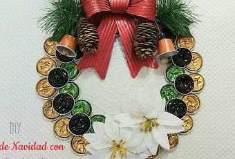 corona navideña con capsulas de café que es preciosa y quedara divina en nuestra puerta ¡Te dejo con ella!