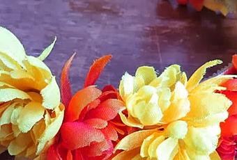 Materiales: un par de ramos de flores de tela en distintos colores. Tiara de plástico de 1 centrimetro (aprox.) de ancho. Pegamento (pistola de silicona, etc).