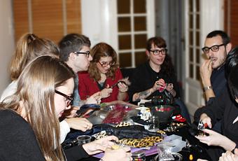 Bea de Secretos de Alcoba no lo dudó ni un instante. Qué mejor para dar valor al handmade que invitar a unos amigos a realizar un DIY en toda regla enseñándonos a hacer nuestro propio tocado o broche en su showroom. Rodeados de fieltros, telas, agujas, dedales, tachuelas, botones, diademas, pins... Empezamos el proceso bajo sus directrices.