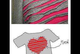 Volviendo al diy, tan sólo necesitamos una camiseta a la que cortaremos el cuello (según gustos) y delimitaremos un corazón que será rasgado en la parte delantera. Por la parte interior incluiremos una tela de color rojo y la coseremos para que quede fija como indica en el tutorial. Y el resultado es fantástico. Qué os parece? Soléis customizar vuestra ropa?