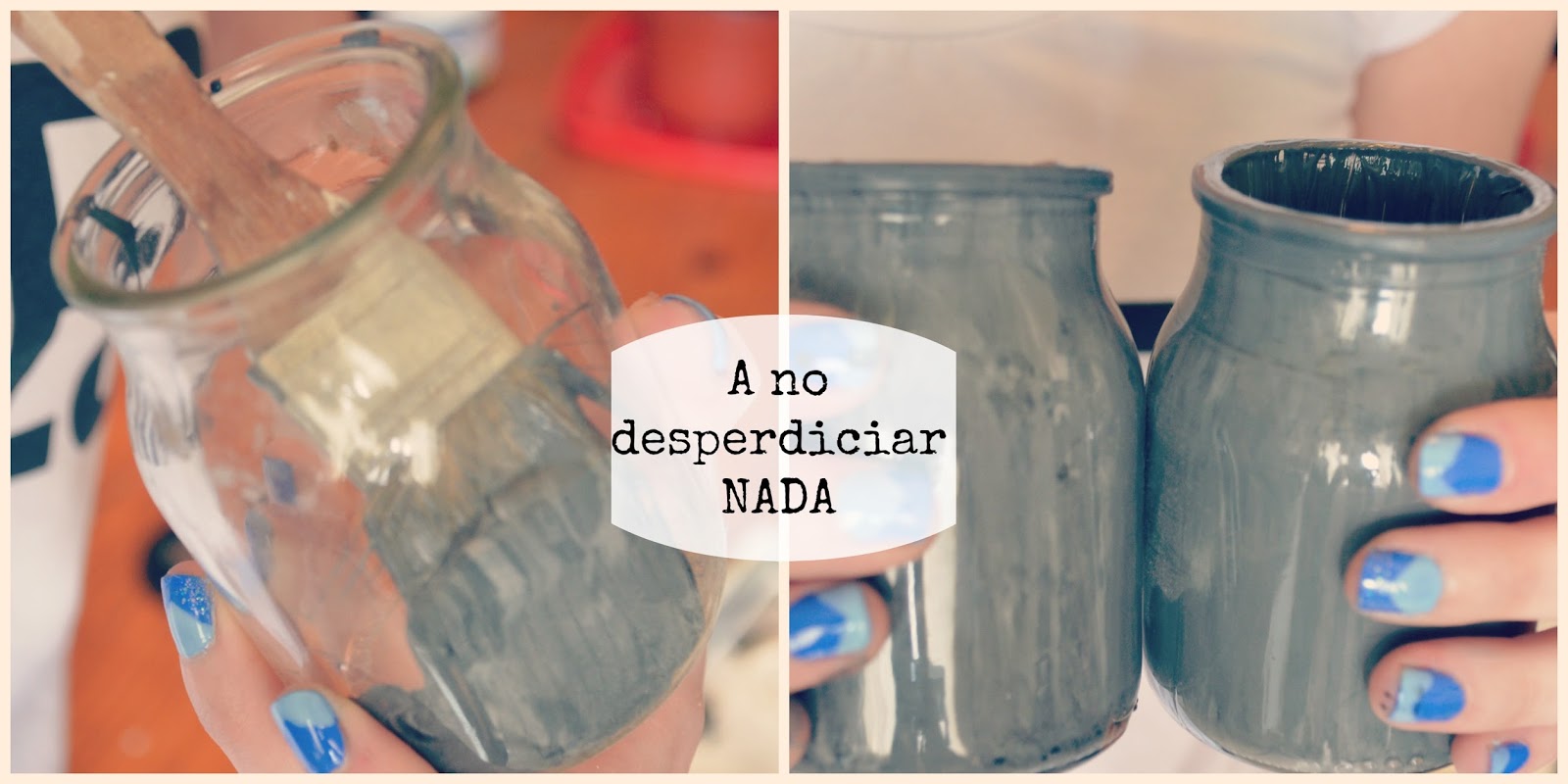 Como me sobro bastante acrílico, y no me gusta desperdiciar nada.Pinte dos de mis taaaantos frascos. Los pinte por adentro.
