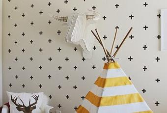 Cómo crear efecto de papel pintado de cruces con washi tape en una pared con gotelé. Es muy fácil, muy fácil:  dibujar cruces de washi tape por toda la pared y listo. Es resultado es chulísimo!