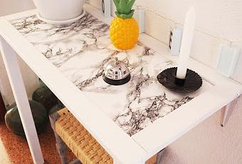 El año pasado, renové el frigorífico con un papel adhesivo de efecto mármol. Aquí podéis verlo.Como me sobró papel, pero tampoco una cantidad grande, pude usarlo para este DIY.