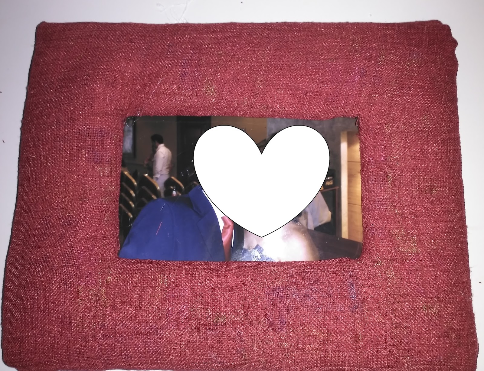 Pasos: Recortar la tela algo más grande que el marco de fotos a forrar, para así tener suficiente material y que después al pegar no andemos justos.