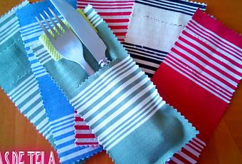 - 4) Aplicar silicona líquida a lo largo de una de las partes de tela y colocar presionando la otra encima. Y con ello ya tenemos una funda para cubiertos de mesa con servilleta.