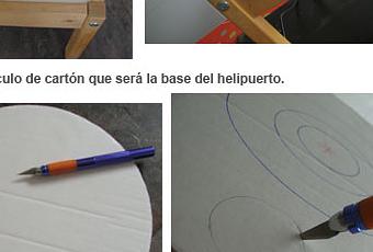 El primer paso con la silla delante fue cortar unos triángulos de cartón que me iban a servir para hacer una puerta de entrada. Luego corté un círculo para el helipuerto. En él hice otro círculo más pequeño en el que metí un rollo de papel de cocina, para comunicar la azotea con la primera planta (así los muñecos de Lego llegan a la planta inferior en un periquete).