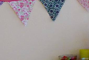 Buenos días,Hace mucho tiempo que tenía ganas de hacer una guirnalda de tela, para decorar, y no encontré mejor momento que el cumple de Beba para hacerlo.Lo primero que hice fue coger restos de telas que tenía por casa, tenía un montón de pequeños retales, que me servian perfectamente para esto.