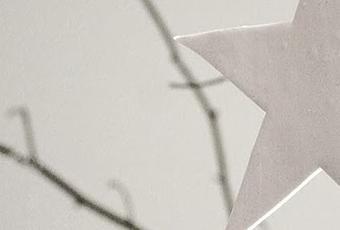 La técnica es tan sencilla como coger una plantilla de estrella, calcarla sobre un trozo de fieltro gordito y recortar con cariño; ahora solo nos falta añadir un cordón y listos para colgar.