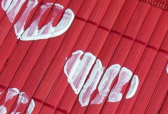 Materiales: individuales de madera o bambú. Pintura acrílica. Goma de "pan". Trincheta (cutter). Esmalte transparente.