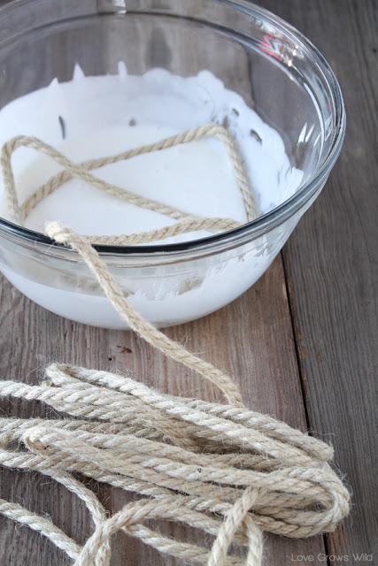 Y ahora toca ensuciarse las manos, y que tenemos que empapar toda la cuerda en la mezcla que preparaste. Tiene que llevar bastante cantidad no debes preocuparte porque luego se secará.