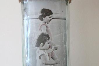 Otro de esos toques decorativos baratillos y que además quedan de maravilla. Por casa seguro que todos tenemos alguna botella de cristal chula y no sabemos que hacer con ella; pues dale un toque vintage reciclado a tu hogar introduciendo alguna foto (si es antigua mejor, y sino siempre nos queda el recurso del blanco y negro) y poniéndola donde más te guste. Por supuesto, también es un regalo original para cualquier cumpleaños, día de la madre,etc.