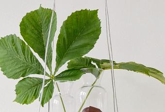 3. En el caso de que queramos forrar nuestra mesita, cortaremos una pieza de cuero del mismo tamaño que ésta, marcamos los 4 agujeros y con el punzón perforaremos. Aplicamos pegamento con el cepillo, unimos a la tabla y dejamos secar.4. Introducimos los dos alambres haciendo una cruz por los agujeros.5. Usaremos los casquillos para cerrar los extremos del alambre.6. Y por último encajar el gancho en el techo y colgar todos los finales de los alambres.