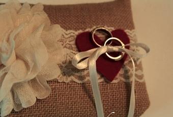 Hice un corazón, unos agujeros y coloqué el lazo donde deje añudados los anillos.