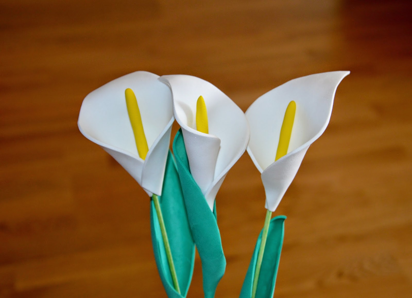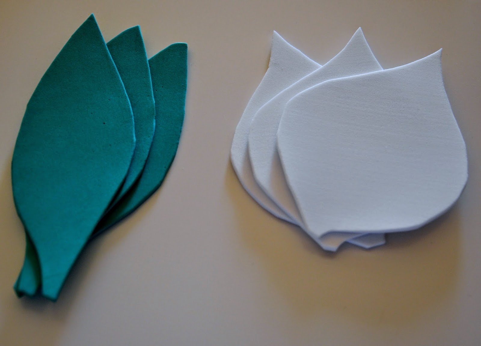 1. En primer lugar, imprime la plantilla para realizar la cala (pincha aquí).2. Recorta dicha plantilla y calca los moldes en las láminas de goma eva. Recorta las formas de la goma eva. Elige el color blanco para el pétalo de la cala (llamado espata) y verde para la hoja. Si lo prefieres puedes hacer la protección de la flor de color amarillo, morado, rosa, naranja,.. en lugar de blanco.