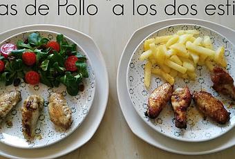 Y ya éstá, ya tenemos preparadas nuestras "alitas a los dos estilos", sólo nos queda presentarlas. En esta ocasión, las alitas "estilo Fé" las hemos acompañado con una sencilla ensalada de canónigos, tomates cherry y pasas, y para los peques hemos acompañado las alitas "estilo barbacoa" con unas patatas fritas. No nos falta de nada ;)