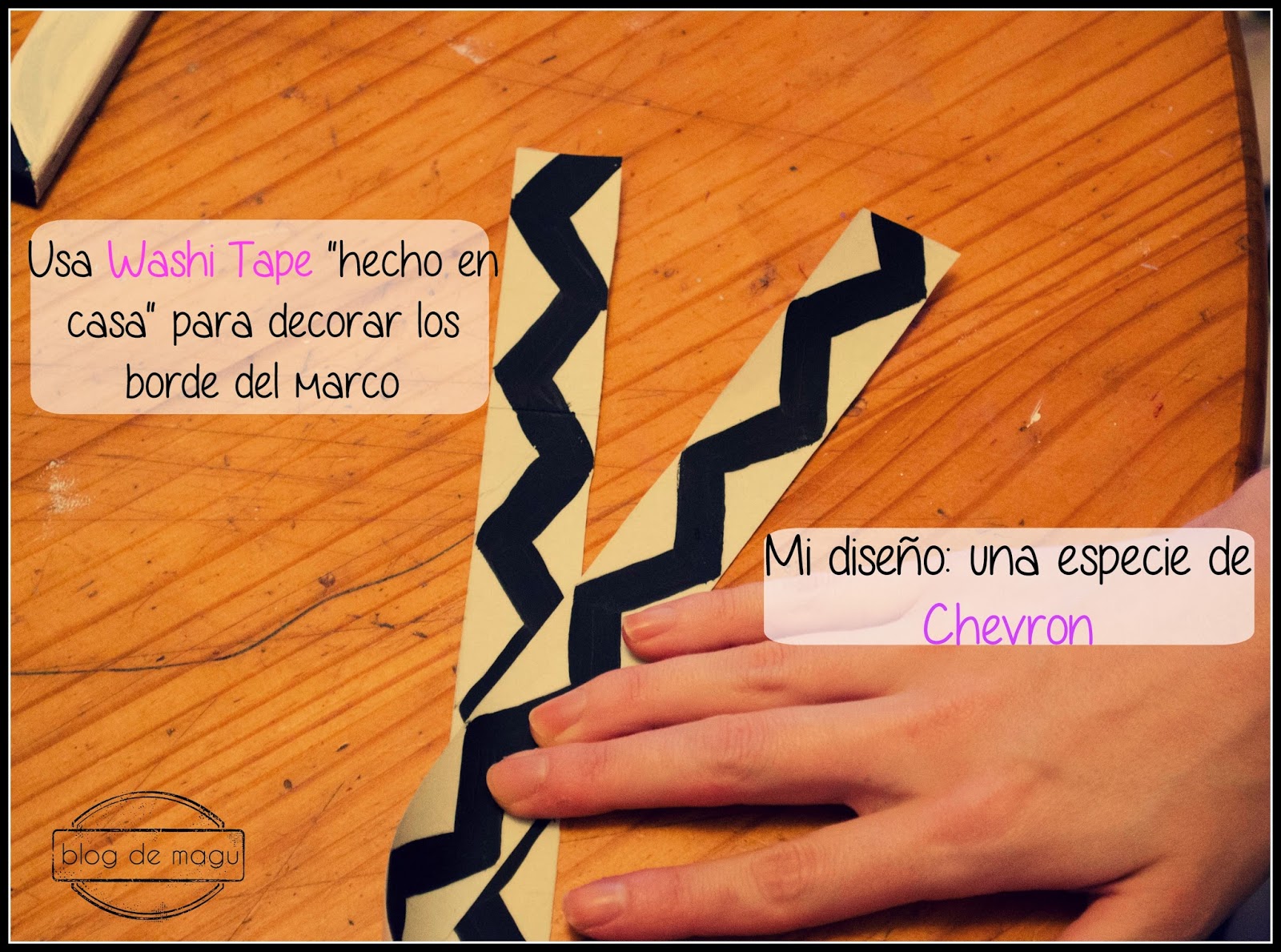 Coloque las cintas, arriba y abajo. En forma horizontal. Para que quede mas armónico, pinte los laterales de negro. Es a tu gusto. ;)