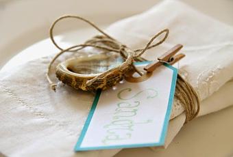 Conchas (en este caso unas orejas de mar que siempre me han parecido preciosas con ese nacarado tan especial), cordel, unas tag de Tiger y poco más porque la sencillez funciona siempre…